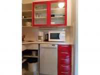 • Kitchenette (fridge/freezer compartment, microwave, coffeemaker, electric kettle, dishwasher)